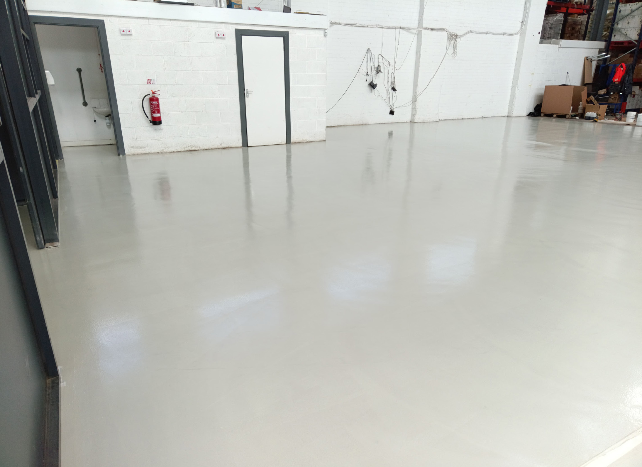 To further strengthen surface protection, a final clear polyurethane seal coat was applied. This provided added UV stability and increased chemical resistance - a practical consideration in an environment where occasional product spillages may occur.