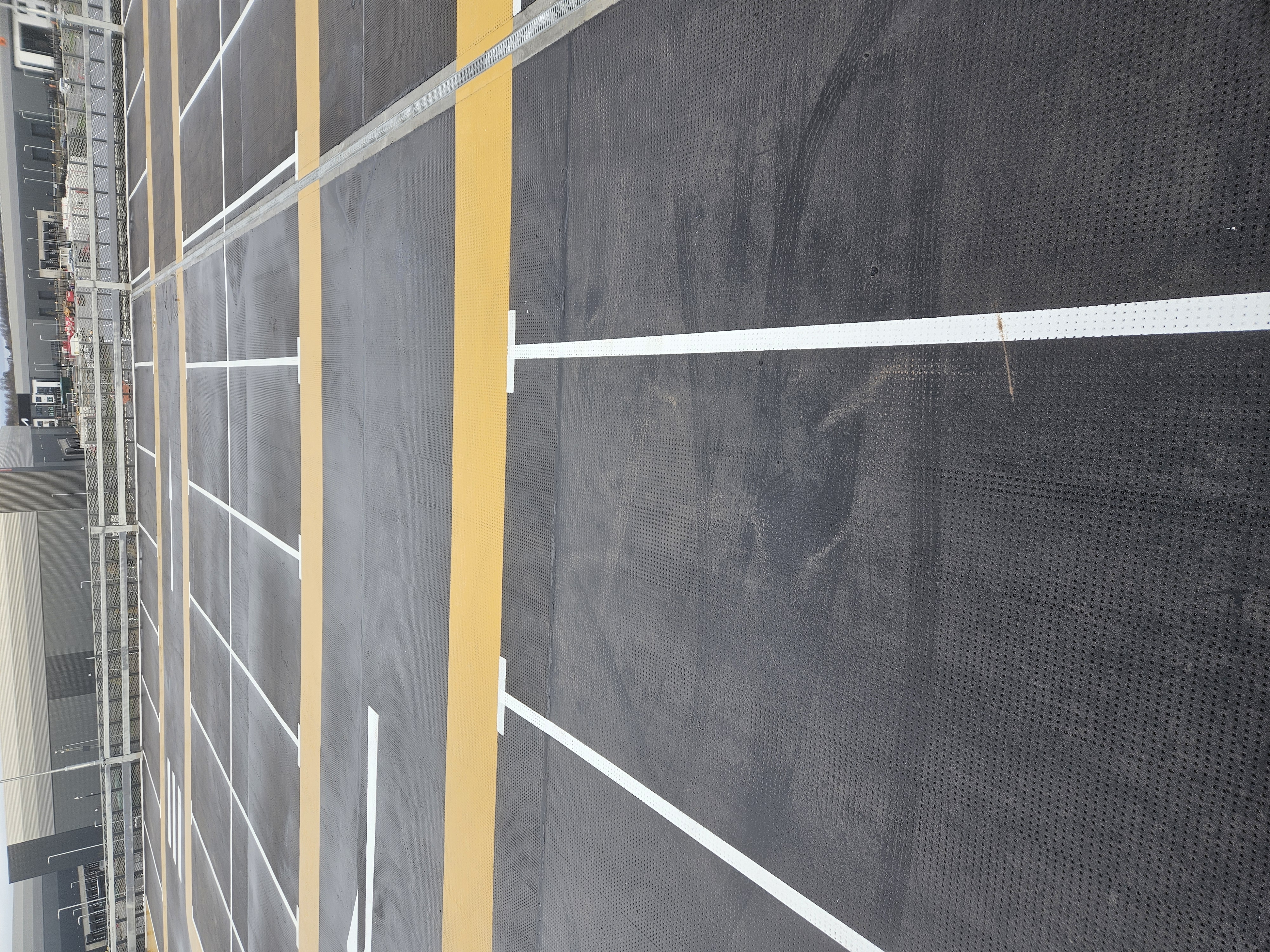 Each level received a distinct colour scheme, helping users navigate the structure with ease. Pedestrian walkways and crossing points were clearly marked, and all parking bays were measured and set out with precision, maintaining smooth traffic flow throughout the site.