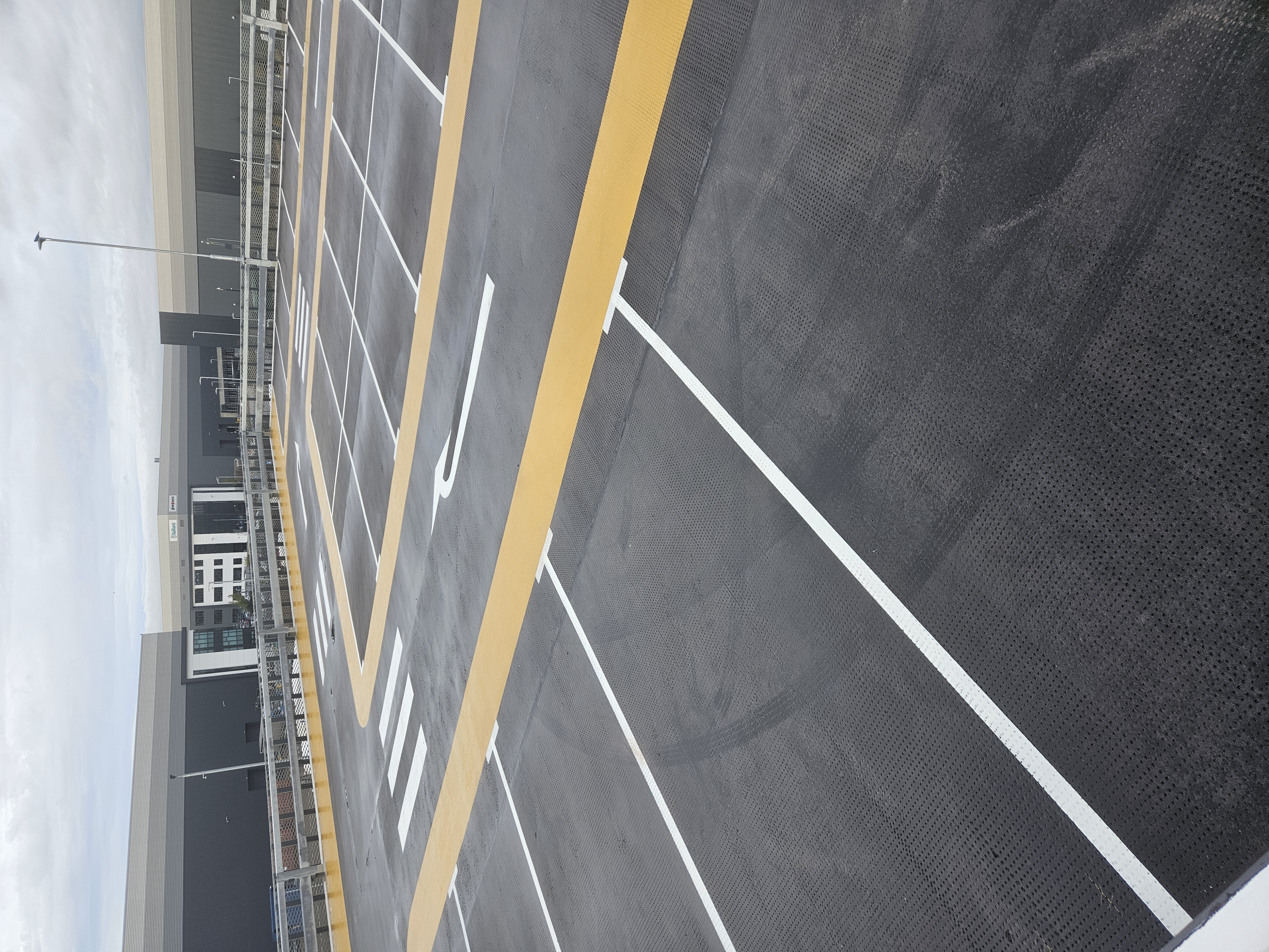 Zenith was appointed to deliver a full resin coating and line marking package within a newly constructed multi-storey car park. The client required clearly defined pedestrian routes, directional markings, parking bays, and crossing points to support safe and efficient use of the facility. The environment needed to meet strict safety and accessibility standards while providing durability for high-traffic use.