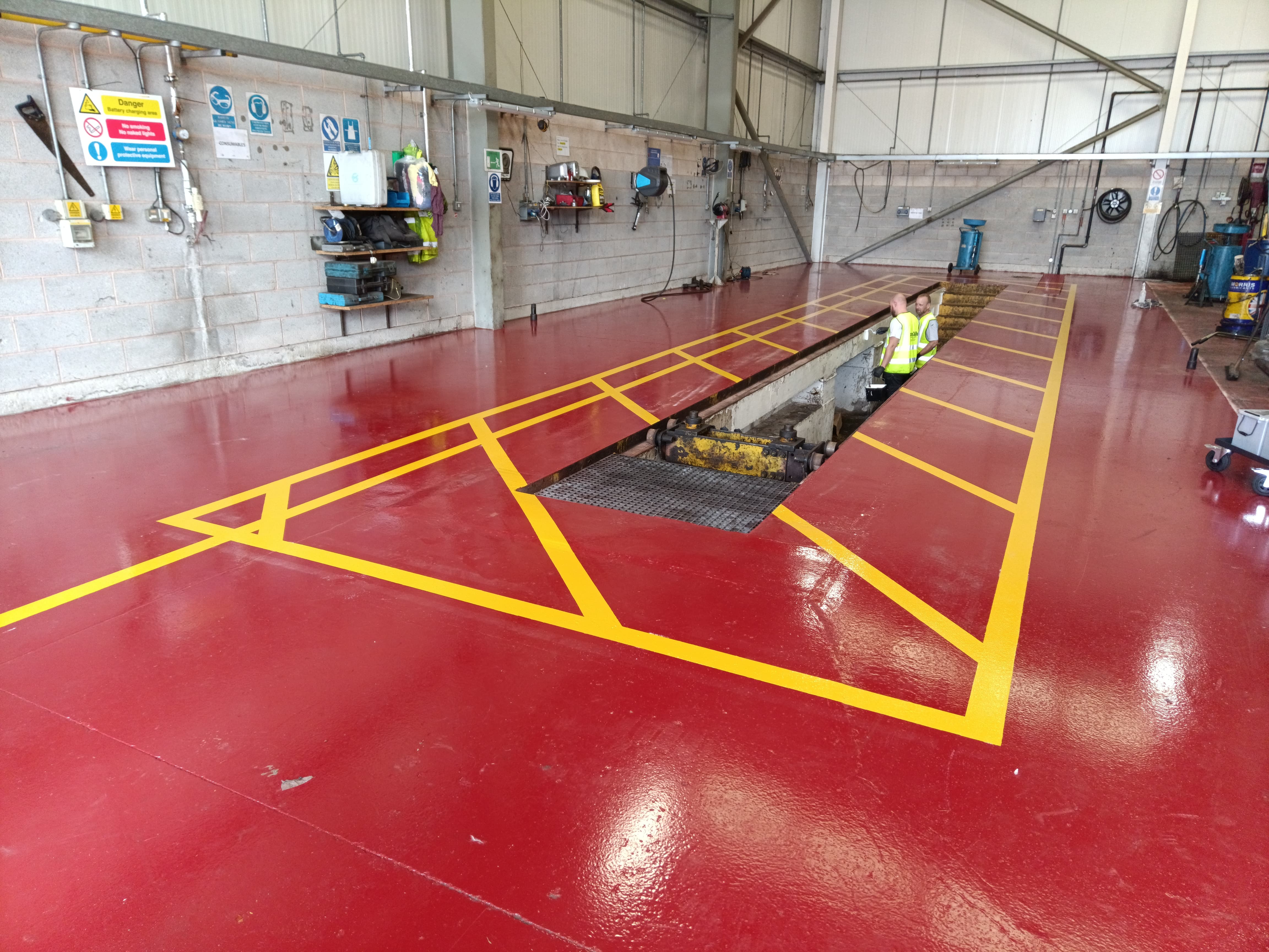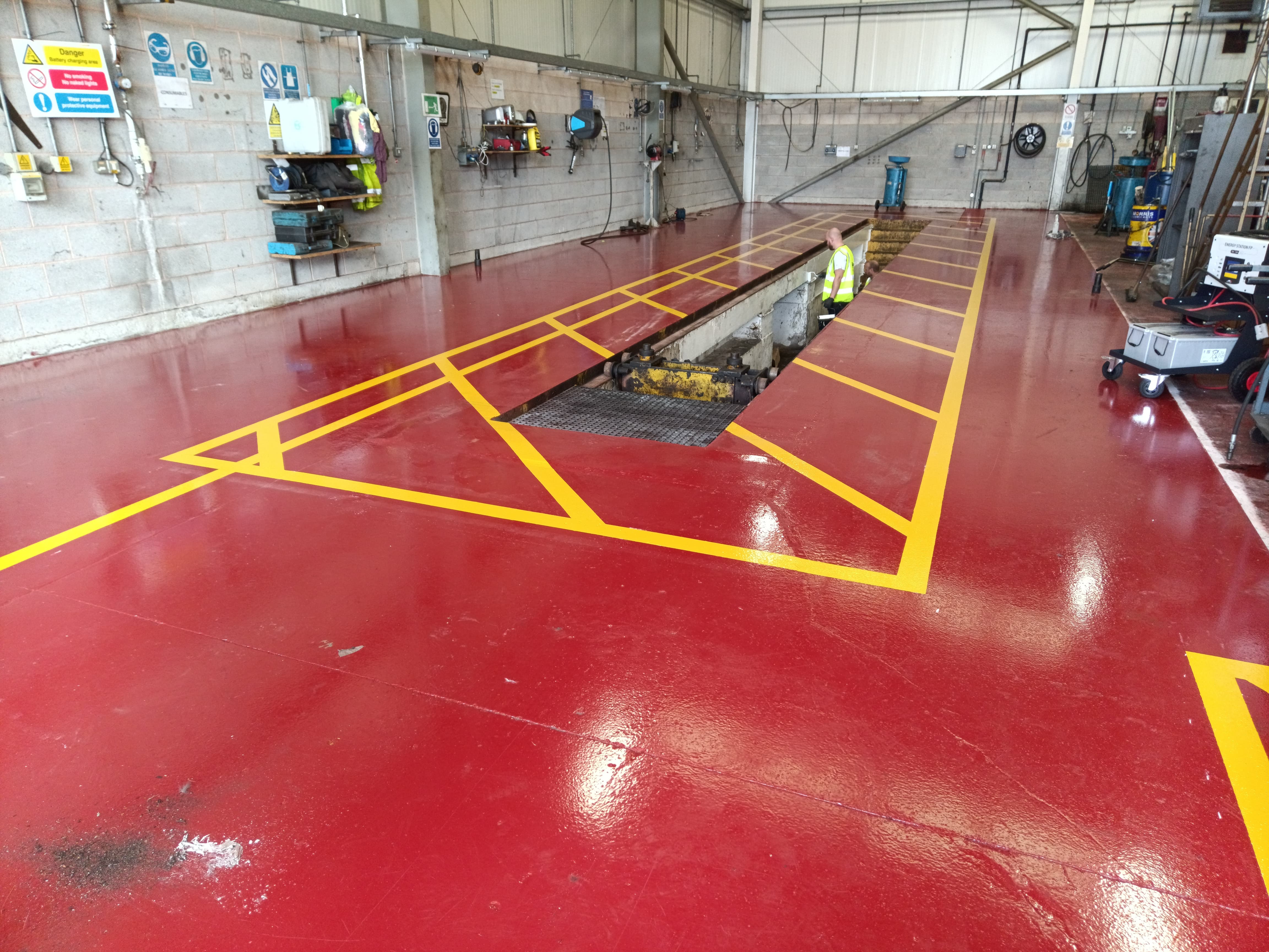 As part of a long-standing relationship with one of our most valued clients, Zenith Contract Services were appointed to refurbish the flooring within their busy vehicle maintenance workshop, including the inspection pit area. The key requirement was to improve safety through high-visibility line markings while also refreshing and protecting the floor surface.