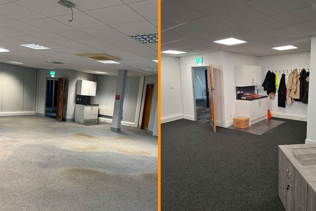 For the electrical works, outdated fluorescent lighting was replaced with energy-efficient, low-glare LED fittings, carefully laid out to suit the new open-plan design. New emergency lighting was also installed to meet current building standards.