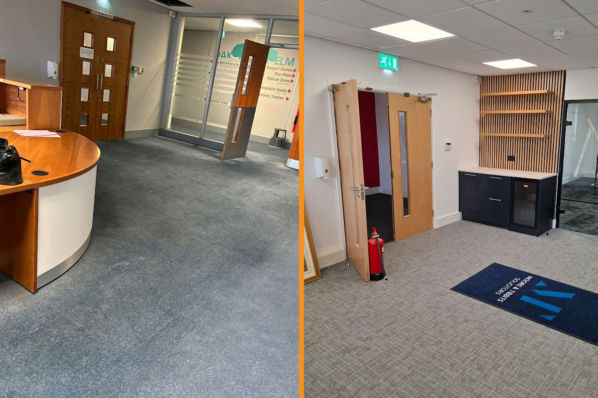 The flooring was then prepared and finished with Desso Essence carpet tiles, chosen for their professional look, durability, and sustainability credentials.